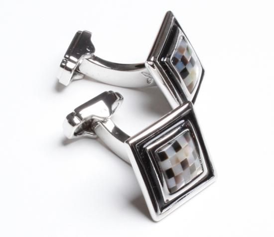●Style;古典的なスタイルのモザイクと不透明なエナメルを組み合わせたブラック天然石マザーオブパールを使ったスクエアカフリンクス。