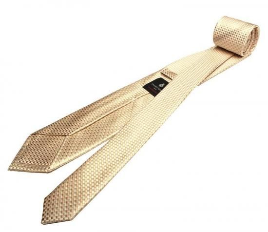 特別仕様のネクタイです。裏地を表生地と同じシルク素材使い、共地にすることにより適度な重さとボリュームで独特の締め心地が楽しめます。通常のネクタイを1本作成するのに対して2割くらい余分に表生地を必要とします。 職人のハンドメイド(手縫い)は機械縫いとは違い、生地のテンションを見ながら縫製するのでふっくらとした仕上がりで、裏側に備わるループ状のたるみ糸はネクタイを結ぶと糸が動いて力を分散させステッチが切れたり、生地が歪んだりするのを防ぎます。手縫いの高級ネクタイによく見られる仕様です。 また、ブランドネームはエクスクルーシブ仕様のタグを使用しています。普段は目立たない部分ですが存在感があるネクタイです。